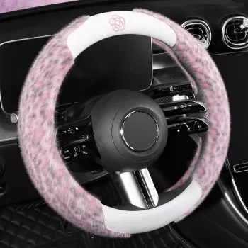 Leopard Plush Steering Wheel Cover – Soft Non-Slip Winter Grip 15 in