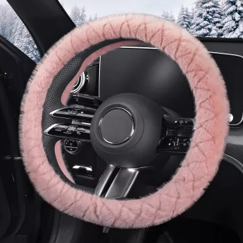 Plush Diamond D-Shape Steering Wheel Cover – 15 Inch Universal Fit