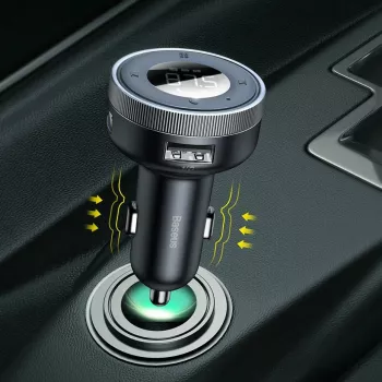 Bluetooth 5.0 FM Transmitter & Wireless Car Charger with Dual USB