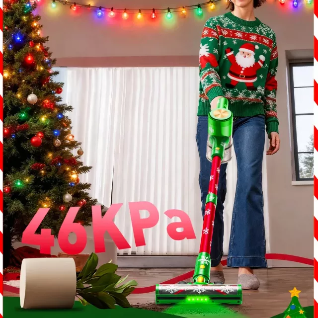 Designed for busy households, its self-standing build makes it easy to grab and store. Use it during holiday hosting, quick touch-ups between gatherings, or deep cleans any time of year. The friendly LED display, green LED floor lights, and multiple suction modes ensure effortless, precise cleaning wherever you need it.
