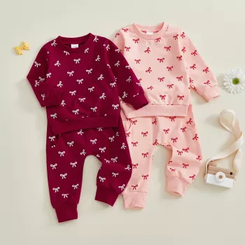 Toddler Girl Fall Outfit Set – Crochet Flower Sweater & Ribbed Flare Pants