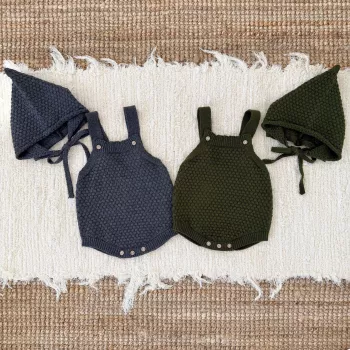 Knit Pom-Pom Baby Boy Romper & Hat Set