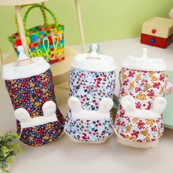 Winter Dog Down Jacket with Cute Rabbit & Floral Print