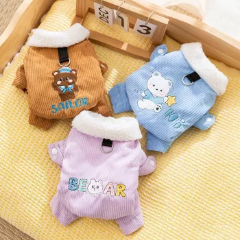 Warm Corduroy Four-Leg Dog Jacket for Fall & Winter