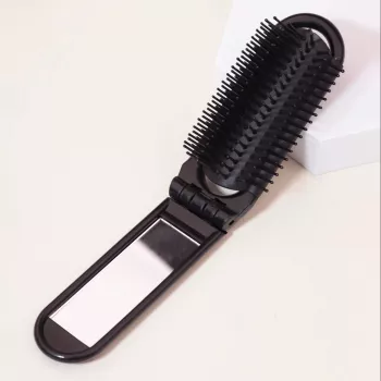 Folding Travel Mirror Hair Brush – Compact Detangling & Massage Brush