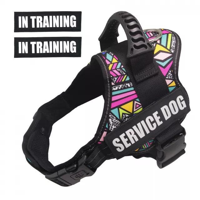 This harness is crafted with breathable, skin-friendly materials that keep your dog comfortable in any season. The ergonomic design distributes pressure evenly across the chest instead of the neck, preventing choking and making it ideal for daily walks, training sessions, outdoor adventures, and service work. Reflective stitching boosts visibility during evening walks, while the bright mosaic pattern brings standout style. Whether used by professionals or loving pet owners, this harness is built for long-lasting performance.