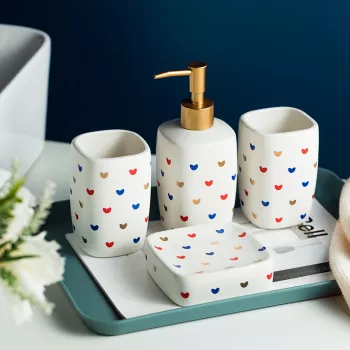 Pink Ceramic Bathroom Accessory Set – Toothbrush Holder, Soap Dispenser & Cup
