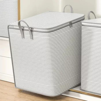 Grey Striped Zippered Storage Bag – Large Capacity Dustproof Organizer