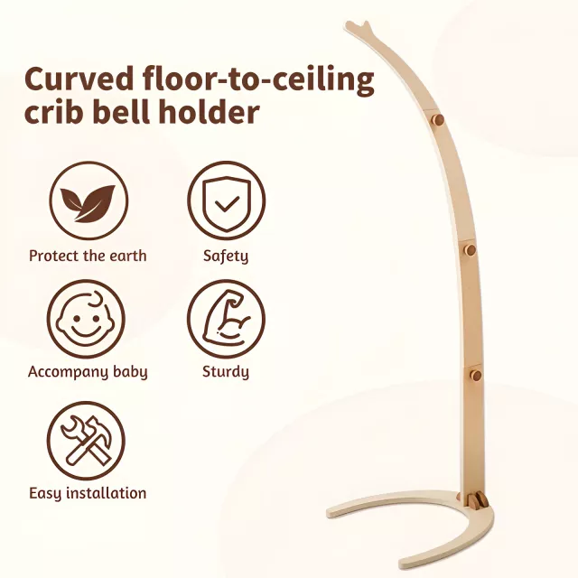 The product offers essential features every parent appreciates. It is made entirely of durable wood and includes a floor stand that supports hanging toys, rattles, or musical bells. The stand accommodates infants and young children across a wide age range, making it a long-lasting nursery companion. Its natural materials and soft tones make it special—simple, elegant, and thoughtfully designed for baby-safe play.